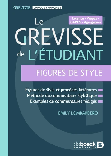 La référence Grevisse en stylistique La référence en stylistique - complète : les figures de styles et les procédés littéraires classés, expliqués et illustrés d'exemples empruntés à la littérature française du XVIe au XXIe siècle - actuelle : la stylistique à la lumière de la recherche récente - méthodique : de l'unité sonore du phonème à l'unité énonciative du discours en passant par celles du mot, du syntagme et de la phrase - pratique : les notions essentielles, des renvois, un riche index de 1500 occurrences, des encadrés répondant aux questions terminologiques fréquentes - didactique : la méthode de l'analyse stylistique expliquée pas à pas + cinq exemples de commentaires stylistiques rédigés, à partir de cinq textes littéraires classiques et contemporains La référence des étudiants en Lettres Lettres modernes, Lettres classiques, Grammaire, Sciences du langage, MEEF (métiers de l'enseignement, de l'éducation et de la formation).