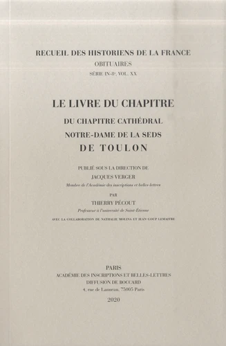 Manteyer s'était avant tout intéressé au martyrologe, tout en signalant la présence de nombreux obits marginaux s'échelonnant du XIIe à 1587. Le présent volume apporte l'édition intégrale des 831 notices ajoutées sur les marges des éloges du martyrologe, qui allaient de la simple mémoire à l'énoncé des fondations faites à charge d'anniversaire. A côté de leur aspect strictement mémoriel, ces notices nous éclairent sur le fonctionnement du chapitre cathédral, son recrutement, sur la confrérie laïque qui lui était associée, sur ces laïcs qui confiaient le salut de leurs âmes à la prière des chanoines, mais aussi sur l'histoire urbaine et la topographie de Toulon.