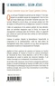 Relisant la vie de Jésus, cet ouvrage analyse son rôle de leader et l'efficacité de sa stratégie pour convertir le monde. L'idée est audacieuse et les auteurs jubilent de nous dévoiler, dans cet entretien imaginaire avec le Christ, les leçons de management contenues dans les Ecritures. Jésus n'y apparaît pas comme un coach naïf mais bien comme un chef volontaire, ferme et dévoué. L'amour, le pardon, l'équité, la bienveillance, l'assertivité, la congruence et la communication : voilà les sept piliers du management selon Jésus, explorés un à un, dans une approche résolument novatrice et réjouissante de l'Evangile.