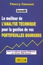 S'appuyant sur l'étude de graphiques, l'analyse technique, qui permet d'anticiper l'évolution du cours d'un titre, est l'outil le plus utilisé par tous ceux qui savent tirer profit de la Bourse quelle que soit la conjoncture. De ce fait, elle est devenue incontournable pour une gestion efficace des portefeuilles boursiers. Bénéficiant du savoir-faire d'Investir, le premier hebdomadaire financier en France, cet ouvrage pratique explique l'analyse graphique et l'analyse technique de façon claire et détaillée afin que tout gestionnaire de portefeuilles puisse aisément les utiliser.