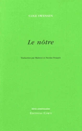 Troisième livre de poésie de Cole Swensen à paraître chez Corti, Le Nôtre conclut ce que l'on pourrait appeler sa trilogie française (après « Si riche heure », 2007, qui traverse notre 15e siècle en s'appuyant sur l'iconographie des Très Riches Heures du Duc de Berry, et après « L’Âge de verre », 2010, qui considère l'histoire du verre et de la fenêtre à la lumière de l'oeuvre de Bonnard et de quelques autres).