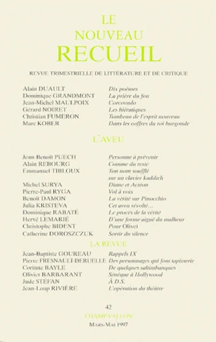 Le Nouveau Recueil N°42 Mars-Mai 1997 : L'Aveu