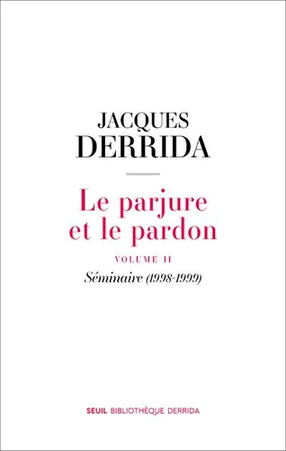 Jacques Derrida poursuit dans le second volume de son séminaire sa réflexion sur l'inconditionnalité du pardon, une notion qui ne saurait être confondue avec l'excuse, l'amnistie, la prescription ou la grâce. Si le pardon est hérité de diverses traditions (judéo-chrétienne, coranique et grecque), il ne leur est pas réductible : il excède les modalités du " comprendre ", de la mémoire et de l'oubli, d'un certain travail de deuil aussi.