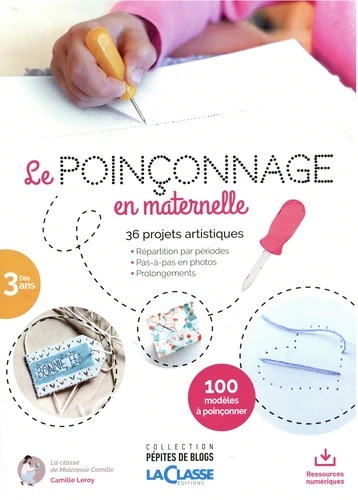 la forêt enchantée ou encore la carte estivale -, qu'il est possible de programmer sur l'année sous la forme d'un rituel hebdomadaire : de nombreux modèles à poinçonner complémentaires sur des thèmes variés (Les animaux de la ferme : les dinosaures. Le matériel de classe, les fruits, les légumes, les quatre saisons..) pour exercer sa créativité. L'ensemble s'appuie sur une progression par étapes. qui favorise l'autonomisation des enfants en Petite, Moyenne et Grande Section.