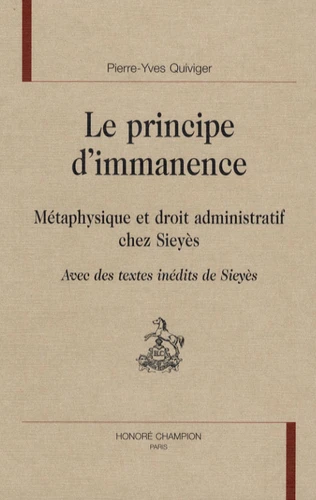 L`oeuvre de Sièyes (1748-1836) est étudiée à travers sa métaphysique, d`un part, marquée par l`influence de Condillac (et derrière lui de Locke et Leibniz) et de Spinoza, et à travers le droit administratif, d`autre part (création d`une institution centrale de l`organisation politique et juridique : le Conseil d`Etat, en 1799). Ces deux aspects de l`oeuvre sieyèsienne constituent les deux faces d`un même projet philosophique (animé par un principe d`immanence) marqué par l`anti-volontarisme, le nominalisme, le contrôle de la légalité et la division analytique des pouvoirs (contre le système des contrepoids).
