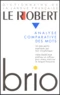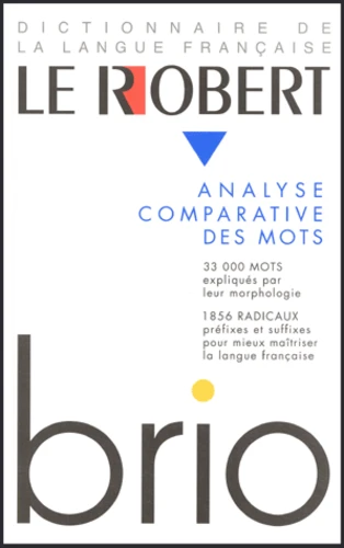 Le premier dictionnaire de langue française qui propose une analyse comparative des mots : 33 000 mots expliqués par leur morphologie, 1 856 radicaux préfixes et suffixes pour mieux maîtriser la langue française. De nouvelles perspectives sur la maîtrise du vocabulaire. Le premier dictionnaire de la langue française qui propose une analyse comparative des mots, ouvrant de nouvelles perspectives dans la maîtrise du vocabulaire. Le Robert brio reprend et prolonge la méthode révolutionnaire du Robert méthodique (1982). Celle-ci, repose sur une analyse comparative des mots permettant la mise en évidence des éléments qui les composent, par exemple : domaine, domestique présentent une partie commune de même sens, l'élément dom-, qui signifie "maison", et qui se retrouve dans majordome. Cet élément, clairement analysé dans un article, constitue donc une clé pédagogique permettant de reconnaître ultérieurement des mots de la même famille, parfois plus rares comme domotique, sans que le lecteur soit obligé de se référer aux langues anciennes (latin, grec, celtique, francique, germanique, etc.) Tous les mots du dictionnaire, quelle que soit leur origine, sont soumis à cette analyse morphologique, par la comparaison d'au moins deux mots présentant une partie commune de sens : -arium (aquarium, solarium), -ero (brasero, torero), -ino (casino, neutrino), -ing (standing, footing), etc. Ceux qu'on ne peut analyser selon les règles de la morphologie sont toujours accompagnés d'une étymologie. Par ces deux procédés, on couvre l'intégralité du vocabulaire français.