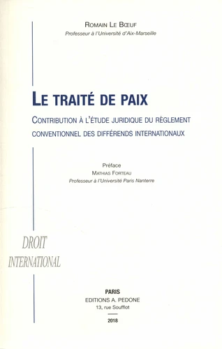 Alors que le monde commémore la fin de la Première Guerre mondiale et le centenaire du traité de Versailles, la question des conditions du rétablissement d'une paix juste et durable continue de se poser avec insistance. A rebours de l'idée classique selon laquelle le traité de paix est le produit exclusivement politique d'un simple rapport de forces, la présente étude propose d'identifier les règles juridiques qui fondent et limitent les prétentions respectives de chacun des belligérants à l'issue d'un conflit.