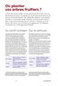 De nombreuses photos et dessins techniques pour illustrer le propos. Récolter ses propres fruits, les manger directement sur l'arbre, savourer leur goût succulent et leur fraîcheur... C'est un privilège accessible à tous, moyennant un petit bout de pelouse disponible, un coin de potager vacant, une haie à étoffer, une allée à délimiter, un mur à habiller... Chacun peut facilement installer quelques arbres ou arbustes fruitiers et avoir ainsi "son" verger, qui n'est nullement réservé aux possesseurs de grands espaces.