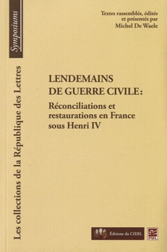 Réconciliations et restaurations sont par nature étroitement liées aux lendemains d'une crise civile de longue durée. La sortie des troubles de religion, qui ont secoué la France durant la seconde moitié du XVIe siècle, ne fait pas exception à cette règle. Les collaborations nécessaires pour remettre un pays déchiré sur pied ne deviennent possibles que si ses habitants acceptent de revivre ensemble, malgré leur passé récent.