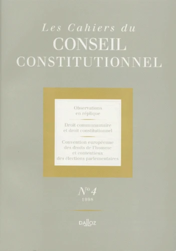 LES CAHIERS DU CONSEIL CONSTITUTIONNEL NUMERO 4 1998 : OBSERVATIONS EN REPLIQUE.. DROIT COMMUNAUTAIRE ET DROIT CONSTITUTIONNEL. CONVENTION EUROPEENNE DES DROITS DE L'HOMME ET CONTENTIEUX DES ELECTIONS PARLEMENTAIRES