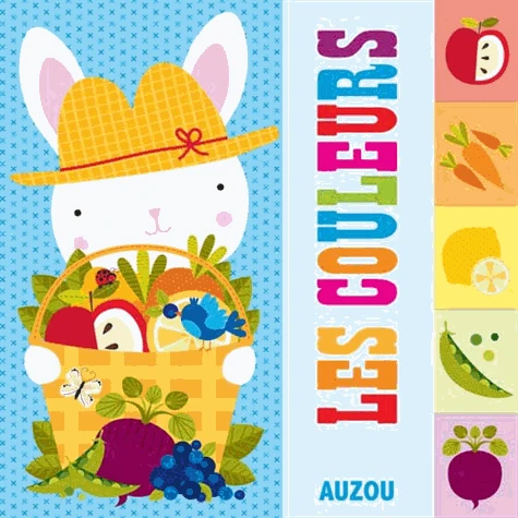 Ce livre tout en carton plastifié est idéal pour les tout-petits dès 18 mois. C'est un livre d'éveil où l'enfant apprend les couleurs en les assimilants à des fruits et légumes. Des onglets permettent de tourner les pages plus facilement.