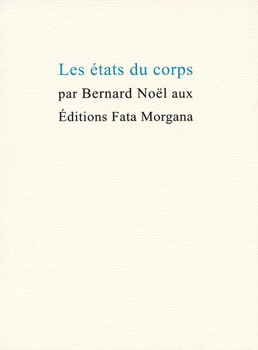 Les états du corps, qui fait écho au premier livre de Bernard Noël, Extraits du corps, est une manière de revenir à ses préoccupations primordiales : Le corps est une carrière à mots, et ses explorations assurent que, là, sous la peau, il y a de quoi refaire la langue. Il interroge encore ce corps par extraits, par états : en onze temps, qui sont autant de fragments de sa légende imprononcée. Dès les premiers mots, c'est toujours le corps qui parle : Au commencement, le corps est ouvert comme un oui.