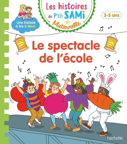 Pour la fête de l'école, Sami et Julie préparent un spectacle déguisé. Les fruits et légumes seront de sortie ! En plus, à la fin du livre : une jolie double page documentaire pour en apprendre davantage sur le potager et comment on fait pousser des fruits et des légumes. " Les histoires de P'tit Sami " : la collection de lecture à deux voix pour les 3-5 ans ! Cette collection de lecture à deux voix, dans laquelle l'adulte lit le texte et l'enfant nomme les mots illustrés, permet à votre enfant de structurer son langage, de se préparer à l'apprentissage de la lecture, et de comprendre ses propres émotions grâce à des thèmes qui lui sont familiers. Des petites histoires qui font parler les enfants !