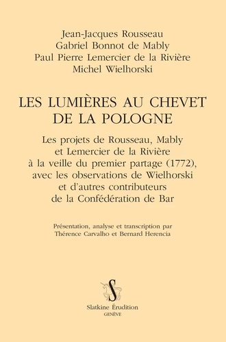 Dans la seconde moitié du XVIIIe siècle, la Pologne-Lituanie est une République en péril. Son territoire est âprement convoité par la Russie, la Prusse et l'Autriche, qui finiront après trois partages (1772, 1793 et 1795) par rayer le pays de la carte géopolitique de l'Europe pour plus d'un siècle. Dans l'espoir de mettre fin à cette crise, Michel Wielhorski (1730-1794), émissaire de la confédération de Bar, arrive en France et sollicite le concours de plusieurs philosophes. Trois penseurs mettent leur plume au service de la République Gabriel Bonnot de Mably (1709-1785), Jean-Jacques Rousseau (1712-1774) et Paul Pierre Lemercier de la Rivière (1719-1801). Cette édition aspire à éclairer d'un jour nouveau ces projets politiques et constitutionnels en rassemblant pour la première fois - les textes inédits des quatre séries d'Observations surfa réforme des lois de la Pologne de Mably avec les Considérations sur le gouvernement de Pologne de Rousseau et L'intérêt commun des Polonais de Lemercier de la Rivière ; - les contributions fondamentales de Wielhorski comme son Tableau du gouvernement de Pologne et son Essai sur les moeurs et le caractère des Polonais, qui constituèrent une source majeure d'informations pour Mably et Rousseau ; - les réactions inédites des membres de la confédération de Bar aux Observations de Mably, qui montrent comment ses idées furent reçues en Pologne-Lituanie et sur quelle base le philosophe fit évoluer son projet. Outre la version intégrale de ces textes, ce volume comprend de multiples documents qui permettent de mieux comprendre le contexte et la vivacité des débats à la veille du premier partage de 1772. Ce passionnant dialogue franco-polonais, qui aborde la question de la modernité du républicanisme et de ses potentialités démocratiques, offre des témoignages exceptionnels de l'émergence d'une pensée constitutionnelle dans l'Europe des Lumières et mérite pleinement d'être redécouvert.