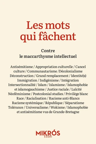 "Désireux d'écrire, de penser et de chercher librement, nous sommes toutes et tous déterminés à combattre ce nouveau maccarthysme qui se pare de la respectabilité universitaire pour mieux instaurer une police de la pensée. Tel est l'objectif de cet ouvrage dans lequel une trentaine d'auteur(e)s analysent de manière libre et indépendante, rationnellement, sans haine ni injure, les mots qui fâchent." "Un dictionnaire pour apaiser les débats." Marc-Olivier Bherer, Le Monde