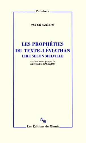 déjà inclus, compris dans le texte. Toujours plus gonflé, le livre-monstre, véritable Léviathan textuel, semble engloutir le monde et avaler jusqu'à celui qui l'ouvre, tel un nouveau Jonas. Le texte-baleine, absorbant aussi d'autres corps écrits (des nouvelles comme L'homme paratonnerre ou Moi et ma cheminée, des romans comme Israël Potter ou Pierre et les ambiguïtés), présente ainsi d'innombrables allégories de la lecture, décrite en termes de pêche, de cartographie, de navigation, de fuite, de naufrage ou de percée. Si un tel livre ne saurait donc être simplement lu, c'est qu'il lit à son tour : non seulement ses propres lecteurs, mais aussi la Bible, ou encore le Léviathan de Hobbes et sa théorie de l'État. Et dès lors, ce qui s'envoie ou se promet, c'est une dimension prophétique du lire. Elle se lèvera dans le vent de la tempête et annoncera la venue de l'avenir. P. Sz.