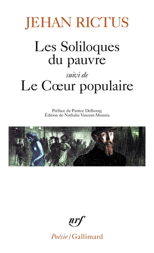 Gabriel Randon, dit Jehan-Rictus, né en 1867 et mort en 1933, connaît une enfance difficile et conflictuelle, il quitte l'école vers quatorze ans, vit de petits métiers divers et commence à fréquenter le milieu des artistes et anarchistes de Montmartre. Menant une vie précaire, sans-logis pendant un temps, il fréquente à vingt-deux ans le monde des clochards et des vagabonds, expérience cruciale qui lui inspirera le meilleur de son oeuvre littéraire. Il a vingt-huit ans quand il entreprend en effet de donner la parole au petit peuple des rues et des déclassés dans des poèmes entièrement écrits dans sa langue, l'argot parisien. Ce sera Les Soliloques du pauvre qu'il fait connaître en les disant lui-même dans les cabarets montmartrois, au Chat noir notamment. Livre inclassable, sans équivalent dans l'histoire de la poésie, ce recueil qui connaît un succès immédiat en raison de sa force lyrique, de sa puissance oratoire et de sa maîtrise prosodique est sans doute, après Villon et avant Prévert ou Queneau, un des rares exemples d'une poésie qui use de la langue populaire et il préfigure d'une certaine façon le rap contemporain. Nous y avons adjoint le recueil Le Coeur populaire, écrit dans la même veine. C'est Nathalie Vincent-Munnia, universitaire spécialiste de la littérature populaire du XIX ? siècle, qui a établi l'édition de ces deux recueils et le glossaire qui permettra au lecteur d'aujourd'hui de se familiariser avec l'argot truculent de Rictus. On trouvera à la fin du volume un lien vers l'enregistrement que fit Rictus de ses poèmes chez Polydor en 1931.