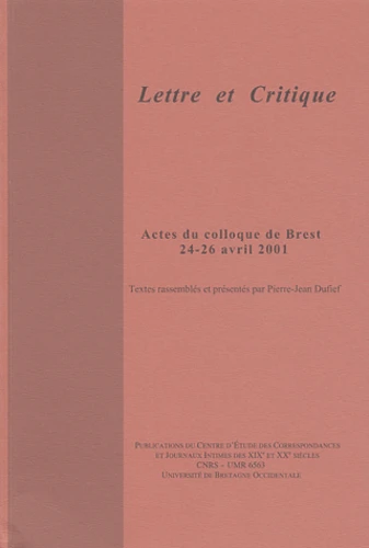 Lettre et critique. Actes du colloque de Brest, 24-26 avril 2001