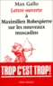La Révolution française ? C'est le premier génocide idéologique. Maximilien Robespierre ? C'est Staline ou Hitler. Les soldats de la République ? Ils égalent en imagination sadique les SS ou les Khmers rouges. Les membres du Comité de Salut public ? Ils inventent le Goulag. Saint-Just ? Avec Robespierre il est responsable de la... Terreur nucléaire ! Puisque l'un et l'autre - un couple homosexuel ? - sont des hommes de lettres ratés qui mettent en branle une " machine à terreur " qui tourne toujours. Bref : la Révolution qui nous a ruinés est un segment dangereusement cancéreux de notre histoire. Et célébrer le 14 Juillet ou la Déclaration des droits de l'homme et du citoyen équivaut à trinquer avec des tueurs et à boire en leur compagnie un verre de sang humain. Voilà ce qu'on lit, ce qu'on entend à la veille de la commémoration du bicentenaire de la Révolution de 89. Et ce n'est qu'un aspect de l'arrogance idéologique des nouveaux muscadins qui sur tous les terrains veulent faire triompher un "catéchisme contre-révolutionnaire". Rares sont les réfutations de leurs propos, directement inspirés des vieilles rengaines "ultras", de tous les vieux thèmes de l'extrême-droite. Or trop c'est trop. Même si l'on estime qu'un mauvais compromis vaut souvent mieux qu'une bonne révolution, se taire et capituler devant les adversaires de la démocratie n'a jamais été la meilleure manière de la défendre. Et les nouveaux muscadins en défigurant la Révolution veulent nous fabriquer un avenir à leur mesure. Trop, c'est trop. Aucune cohabitation n'oblige à se taire quand pérorent les muscadins. Et cela ne vaut pas seulement pour l'histoire de la Révolution française. "