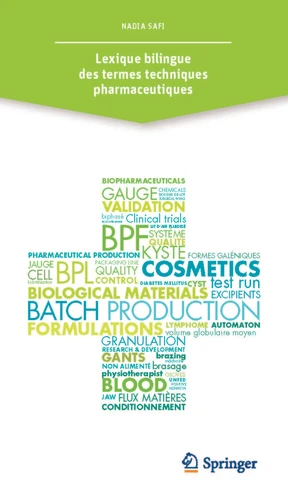 Ce lexique bilingue français-anglais, comprenant plus de 14000 entrées est un instrument indispensable aux industriels et aux étudiants qui évoluent dans l'industrie pharmaceutique. Il est aussi très utile aux traducteurs, et à tous ceux qui doivent utiliser l'anglais dans ce domaine. Il couvre les termes dans les domaines suivants : Développement Galénique, Formulation, Bonnes Pratiques de Fabrication, Equipements Industriels, Procédés de Fabrication, Matières Premières, Centrale des Pesées, Métrologie, Lignes et Articles de Conditionnement, Assurance de la Qualité, Contrôle Qualité, Bonnes Pratiques de Distribution, Affaires Réglementaires, Pharmacovigilance, Dispositifs Médicaux sans oublier les termes de la fabrication industrielle des produits cosmétiques et biotechnologiques.