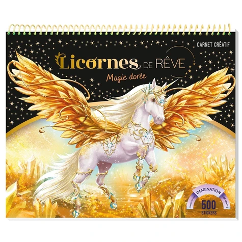 Pour tous les fans de Licornes ! Un grand carnet créatif avec plus de 500 autocollants de Licornes, des pages de dessins, des coloriages, des pochoirs, des planches de motifs, des jeux et des modèles pour s'inspirer. L'enfant part à la découverte des mondes magiques des licornes dorées, les habille de somptueux bijoux, et crée des décors merveilleux. Une activité idéale pour les enfants dès 5 ans, pour développer leur imagination, leur concentration, leur créativité et leur motricité en toute autonomie ! Contenu détaillé : plus de 500 stickers, 5 modèles pour s'inspirer, 25 licornes à dessiner, 16 pochoirs, 4 planches de motifs, des mandalas à colorier, un tuto pour fabriquer une couronne de feuilles d'or, des jeux.
