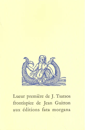"Tout ce qui a sens est lumière" pour Jeanne Tsatsos. Ce recueil est un pas en avant vers le dépouillement d'une poésie intense, cristalline, hymne orthodoxe au Divin.