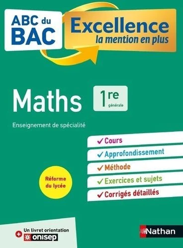 Des cours , de l' approfondissement , de la méthode , des exercices minutés et des corrigés détaillés pour réviser les Maths en 1re ! + Un livret orientation ONISEP Conforme à la réforme du Lycée ABC du BAC Excellence Maths 1re / La mention en plus Pour briller toute l'année ! - Approfondissez toutes les notions du nouveau programme. - Renforcez vos connaissances à l'aide des rubriques : Astuce , Remarques , Conseil , Méthode ...