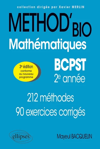Méthod'bio BCPST2 est le seul livre "six en un" qui a compilé, en 450 pages, 13 chapitres et 212 méthodes (à peu près ! ) : - toutes les méthodes en analyse, en algèbre, en probabilités ; - les conseils et les critiques des examinateurs ; - les erreurs à éviter ; - les astuces pour débloquer toutes les situations inextricables ; - des exemples et 90 exercices incontournables ; - des révisions intelligentes et efficaces de la première année.