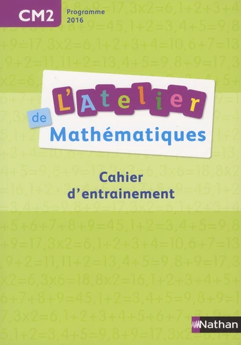 Le cahier d'entrainement L'Atelier de Mathématiques CM2, nouvelle édition 2016 : plus de 250 exercices classés par domaine. > Une nouvelle édition en couleur , conforme au Programme 2016 . > Plus de 250 exercices classés par domaine : l'outil idéal en complément des apprentissages collectifs , quelle que soit la méthode utilisée en classe et la progression suivie. Un cahier consommable, en couleurs et simple d'utilisation : > 22 fiches Nombres dont 4 fiches dédiées aux tableaux et graphiques, 18 fiches Calculs , 18 fiches Grandeurs et mesures , 23 fiches Espace et Géométrie .
