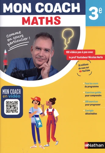 Ton prof particulier à portée de main ! Tout le programme de Maths de l'année avec des cours, des exercices guidés et des exercices d'entraînement Le soutien d'un coach incarné : Nicolas Herla, professeur de Maths Un accès direct à la sélection de vidéos 2 pédagogies complémentaires pour être sûr de bien comprendre et lever tous les blocages : l'écrit et la vidéo Un cahier pour bien comprendre et s'entraîner sur les notions-clés avec le support de l'écrit et le soutien d'un prof particulier en vidéo.