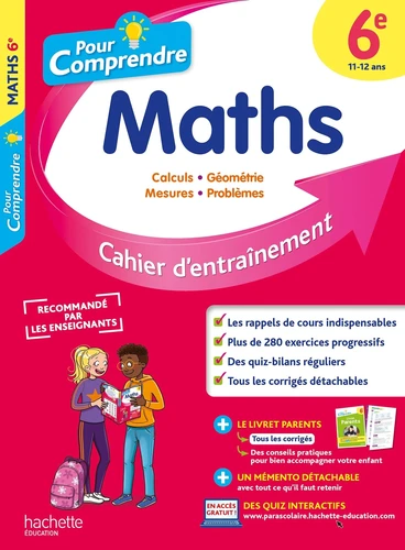 Un cahier d'entraînement efficace pour accompagner le collégien toute l'année ! Les rappels de cours indispensables280 exercices progressifs pour bien s'entraînerDes quiz-bilans pour se tester régulièrementTous les corrigés détachables au centre du cahierDes QUIZ INTERACTIFS gratuits sur : parascolaire. hachette-education. com