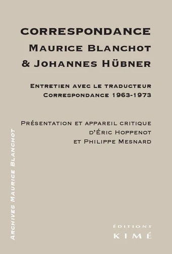 Présentation et appareil critique d'Eric Hoppenot et Philippe Mesnard, tous deux spécialistes de l'oeuvre et de la pensée de Maurice Blanchot.