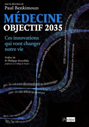 La médecine et les technologies associées connaissent des progrès incroyables. Demain, ces nouvelles feront la une de la presse. Et elles seront parfaite-ment vraies ! À partir d'informations validées par un comité constitué des plus grands scientifiques, Médecine : objectif 2035 présente vingt-cinq ans d'innovations médicales à venir. Chirurgie de pointe, biotechnologies, médecine régénératrice, imagerie médicale, cancérologie, reproduction, génétique... : découvrez les progrès issus de la recherche qui vont bientôt révolutionner la médecine et notre vie quotidienne