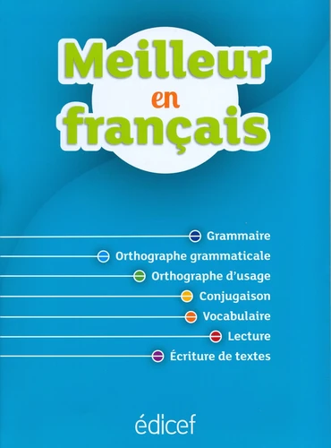 Un outil indispensable pour maîtriser et transmettre la langue française. Meilleur en français propose 94 fiches répertoriées par domaine : grammaire, orthographe grammaticale, orthographe d'usage, conjugaison, vocabulaire, lecture de textes et écriture de textes. Cet ouvrage s'adresse à tous ceux qui souhaitent renforcer leurs bases en français, pour eux-mêmes ou pour accompagner un élève, un enfant.
