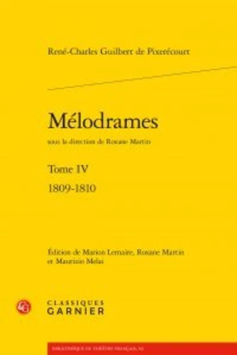 Ce tome présente une édition critique de trois mélodrames (La Citerne, Marguerite d'Anjou, Les Ruines de Babylone), accompagnés de leur musique de scène originale. L'appareil critique offre l'accès aux coulisses de la fabrique du mélodrame pixerécourtien dans le contexte politique très contraignant des années 1809-1810.