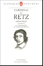 Paul de Gondi, cardinal de Retz, a cru avoir rendez-vous avec l'Histoire. C'était avec la Littérature. À titre posthume. Il redoutait par-dessus tout l'indifférence et l'oubli. Il a gagné il divise la postérité, comme il avait divisé ses contemporains. Sa personnalité flamboyante, tapageuse, éveille encore aujourd'hui des réactions très vives, contrastées. Autant qu'à l'acteur de la Fronde, elles s'adressent à l'auteur des Mémoires les plus irrévérencieux et les plus séduisants qui soient. Peinture haute en couleur d'une société que n'a pas encore policée et assagie la main de fer du Roi-Soleil, catéchisme de politique politicienne et bréviaire de subversion, retour sur soi d'un vaincu nostalgique de son rêve héroïque foudroyé, victoire de l'intelligence sur le réel qu'elle maîtrise pour le disséquer, ultime revendication de liberté chez un homme au seuil de la mort - liberté de la pensée, du ton, du style l'œuvre est si riche et si diverse que chacun peut y trouver son bien. Ce récit touffu, qui nous introduit comme par effraction dans un monde peu familier, n'est pas d'accès facile. Simone Bertière, la plus autorisée des spécialistes, auteur d'une biographie qui fait référence (La Vie du cardinal de Retz, Éditions de Fallois, 1990), lui a joint une introduction, des notes, un glossaire et des index qui, dans un esprit de soumission au texte, loin de toute érudition superflue, visent simplement à en rendre la lecture plus aisée et plus agréable, pour que se fasse mieux entendre la voix d'un des écrivains majeurs de notre littérature.