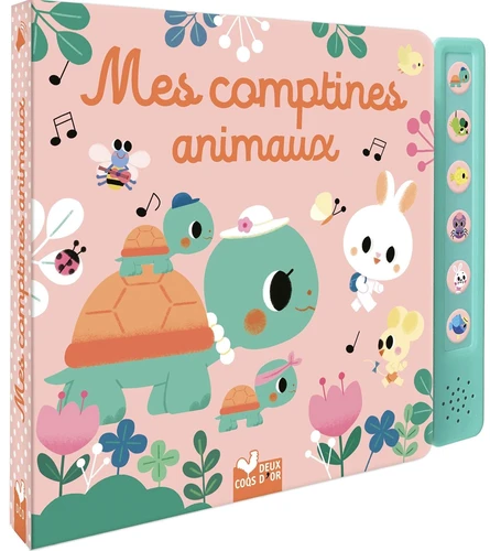 Retrouve tes comptines préférées : - La famille Tortue - Une souris verte - Les petits poissons - Une araignée sur le plancher - Mon petit lapin - Une poule sur un mur Un livre sonore pour chanter et danser avec les animaux !