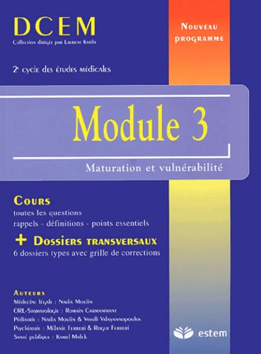 Le nouveau programme du DCEM, avec un découpage et une organisation des connaissances par modules thématiques, replace les patients et leurs pathologies dans un cadre transversal naturel, permettant au futur médecin d'améliorer leur prise en charge immédiate et à long terme. Cette nouvelle collection traite l'intégralité des items du programme modulaire du DCEM. Pour chaque ouvrage, le directeur de collection, Laurent Karila, a fait appel à des auteurs de spécialités différentes qui ont pris soin de faire ressortir l'incontournable trame qui permettra à l'étudiant de réussir ses modules transdisciplinaires. Les chapitres, rédigés de façon claire et synthétique, enrichis de nombreux tableaux, encadrés et illustrations, facilitent la mémorisation de l'essentiel.