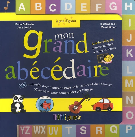Apprentissage de façon ludique et progressive des lettres, des mots et des phrases de la Maternelle au CP. Des lettres manuscrites pour un apprentissage scolaire de la lecture et de l'écriture : 500 mots-clés illustrés pour une meilleure appréhension des mots. 52 saynètes illustrées pour comprendre par l'image. Apprentissage de l'écriture : la lettre est présentée d'une part en caractère typographique et manuscrit, d'autre part en majuscule puis en minuscule. L'enfant l'assimile et la recopie facilement. Découverte et reconnaissance des mots : Un mot = une image, compréhension immédiate et spontanée. La lettre concernée est mise en avant dans le mot par une couleur différente. Apprentissage de la lecture : Des saynètes pour faciliter la compréhension des mots et des phrases : l'enfant comprend et retient plus facilement les mots dans un contexte familier. C'est le démarrage de la lecture.