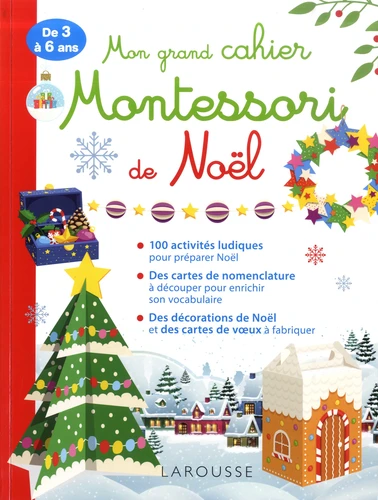 Conformément aux principes de la pédagogie Montessori, ce cahier propose des activités basées sur la manipulation : votre enfant sera notamment invité à faire des collages, monter des boites, préparer des biscuits, etc. Certaines activités proposent une découverte culturelle, en présentant à l'enfant les traditions liées à Noël en différents endroits du monde : en Russie, en Amérique du Nord... Voilà de quoi satisfaire sa curiosité et élargir son horizon.