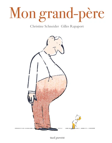 Un tout petit enfant voit son grand-père très, très grand, depuis sa petite taille à lui. Ce grand-père, c'est un géant ! Et l'enfant se sent comme le petit Poucet à côté de ce doux ogre qui dit des mots tendres avec sa très grosse voix. Il a d'immenses mains ridées qui lui réchauffent les siennes, de gigantesques oreilles comme des coquillages dont il tire les lobes et les poils blancs, une peau douce comme du velours...