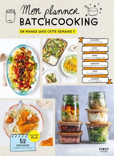 Lorsqu'on veut s'initier au batchcooking et que l'on cherche un livre pour bien faire, on trouve de nombreux ouvrages. Mais lorsqu'on y ajoute des impératifs (végétarien, petit budget, express...), on est obligés de prendre un livre pour chaque thématique. Mon planner batchcooking résout enfin ce problème ! Chaque semaine, une thématique est déclinée (cuisine du monde, pique-nique, facile...) avec une liste de courses pas trop grande et accessible mais aussi les besoins en matériel. Un livre complet et parfait pour commencer !