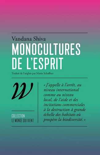 Que se passe-t-il lorsque seuls certains types de plantes et de personnes sont valorisés ? Dans Monocultures de l'esprit, la penseuse indienne Vandana Shiva s'attaque à ce qui pourrait être le problème central du "développement" : en maximisant certains types de production, nous éliminons systématiquement tous les autres types de vie, humaine et non humaine. L'autrice analyse de façon méthodique comment une certaine vision de la science portée par l'Occident a conduit à un système de monoculture dans l'agriculture et la foresterie - un modèle qui est en train d'être imposé à tous les pays des Suds, où il supplante des systèmes ancestraux véritablement durables de ces sociétés, et plonge des millions de personnes dans la pauvreté. Pour lutter contre ces monocultures de l'esprit, Shiva appelle à une démocratisation des savoirs légitimant la diversité, et à une "insurrection des connaissances subjuguées". Cinq essais militants et accessibles sur les véritables implications de la monoculture, par une des plus grandes altermontialistes du Sud global.