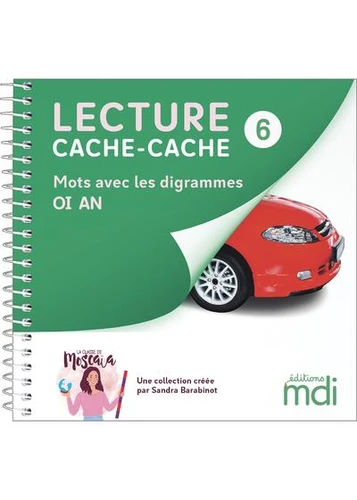 9 livres pour découvrir les bases du décodage et lire ses premiers mots, dès la maternelle ! Série verte, livre 6 : 16 mots qui contiennent les digrammes OI et AN. Des albums sur 3 niveaux de difficulté, pour apprendre à décoder à son rythme : - série violette : sons simples, - série verte : digrammes, - série orange : sons complexes. L'ensemble des mots sont présentés en script dans la police MDI école (capitales d'imprimerie) et en cursive dans la police Belle Allure. - Série violette : les lettres en noir. - Séries verte et orange : les lettres en noir et les digrammes en vert. Du mot vers l'image : un système de cache pour permettre aux élèves d'apprendre à décoder de manière ludique : les photos sont masquées par un cache, pour que l'enfant puisse lire le mot avant de découvrir l'image correspondante. Les compléments numériques : Des quiz vidéo accessibles en ligne, reprenant les mots du livre. Des fiches pédagogiques avec la leçon en 3 temps, les activités ludiques autour de la découverte des sons, les séances de lecture... Les 9 livres de la collection : Série violette : 1 Mots de 3 à 4 lettres - Sons simples 2 Mots de 4 à 7 lettres - Sons simples 3 Mots se terminant par E - Sons simples Série verte : 4 Mots avec les digrammes OU, CH 5 Mots avec les digrammes ON, IN 6 Mots avec les digrammes OI, AN Série orange : 7 Mots avec plusieurs digrammes 8 Mots avec des lettres muettes 9 Mots avec des groupes de consonnes Sandra Barabinot est professeure des écoles depuis 14 ans dans l'académie de Créteil. Elle enseigne actuellement en maternelle après avoir travaillé plusieurs années en cycle 2. Son travail s'inspire de la pédagogie Montessori, qui souligne l'importance de l'entrée dans la lecture par le son dès la petite enfance. Elle anime le compte Instagram La classe de Moscaïa.