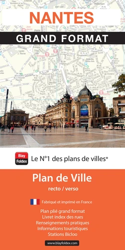 Le plan de NANTES GRAND FORMAT offre un contenu complet : Rues piétonnes, Parkings, parkings relais, Transports en commun, Principaux édifices publiques (Administration, Ecoles, Lieux de culte, Installations sportives, Espaces de loisirs, Centres commerciaux). Vous trouverez en plus dans ce plan quelques mots d'introduction sur la ville, les sites à visiter, des renseignements pratiques, les stations vélos en libre service, le plan des environs.