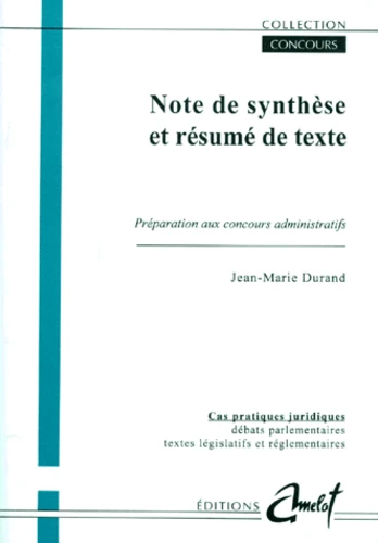 La plupart des concours administratifs du cadre B et quelques-uns du cadre A, prévoient une épreuve écrite de note de synthèse ou de résumé de texte. De même dans le cadre d'études universitaires, notamment en Droit, la maîtrise de cet exercice est indispensable. Des règles précises et de précieux conseils vous permettront de maîtriser cette épreuve dont les résultats seront déterminants pour votre succès futur.