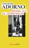 Traduites pour la première fois en français en 1984, les Notes sur la littérature regroupent une série d'essais consacrés à des écrivains (Balzac, Proust, Valéry, Beckett...) et à des thèmes littéraires (le statut du narrateur, la poésie lyrique...). Le genre de l'essai, auquel est d'ailleurs consacrée la première de ces " notes ", est l'une des formes de prédilection du philosophe : à rebours de la " perception claire et distincte " léguée par Descartes, il incarne un mode de connaissance spécifique - qui ne se soucie de résoudre ni l'équivoque ni la contradiction -, et adéquate aux théories esthétiques d'Adorno.