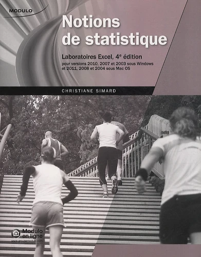 Ces laboratoires, conçus pour accompagner le manuel Notions de statistique, permettent à l'étudiant de mettre en pratique les connaissances qu'il a acquises pendant le cours. Les laboratoires sont courts et prennent la forme d'un travail personnel à faire à la maison. La méthode du pas à pas utilisée permet de respecter le rythme d'apprentissage de chacun. Le cahier présente la marche à suivre pour les versions Excel 2010, 2007 et 2003 sous Windows, et pour les versions Excel 2011, 2008 et 2004 sous Mac OS.