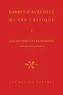 Tout au long de sa carrière littéraire, Barbey d'Aurevilly (1808-1889) fut un collaborateur assidu de la presse de son temps et un critique redouté. À La Mode, au Pays, au Constitutionnel, à Triboulet, il fut l'observateur attentif de l'actualité éditoriale, des nouvelles productions dramatiques et de la vie intellectuelle en général. Cet aspect de son activité littéraire lui importa assez pour qu'il éprouve le désir de recueillir en volumes un grand nombre de ses études critiques.