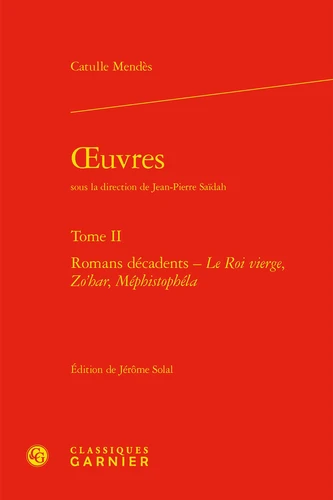 Dans trois de ses romans contemporains, Le Roi vierge (1881), Zo'har (1886) et Méphistophéla (1890), Catulle Mendès explore la société fin-de-siècle et orchestre une mascarade endiablée et funèbre où ses personnages se livrent au "délire des concupiscences" et au jeu des transgressions.